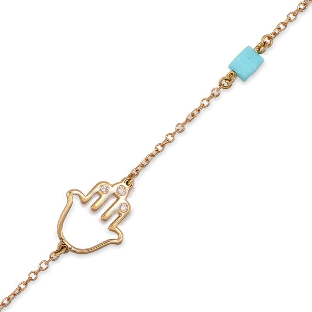 Bracciale con Mano di Fatima in Oro Rosa 18 Kt con Diamanti