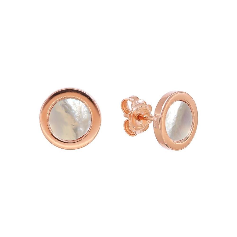 Orecchini in oro rosa 750°/°° con madreperla. Una coppia. Peso: 4,8 gr. Diametro 11 mm.